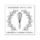 Carimbo moderno da padaria. Design apresenta uísque, coroa floral, seu nome comercial e roteiro "feito à mão com amor". Carimbo perfeito, na moda para o padeiro, padaria, padeiro, cozinheiro, cozinheiro, etc. Personalize ainda mais o seu nome ou nome comercial.