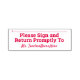 Este simples design de carimbo contém a mensagem "Please Sign and Return To" (Assinar e retornar imediatamente para), além de uma linha onde uma assinatura ou iniciais poderiam ser escritas acima. Ele também apresenta um nome personalizável de professor ou professor. Talvez possa ser usado por um educador, professor ou tutor para pedir aos pais ou tutores de um estudante que revejam e reconheçam a nota que um estudante recebeu num jornal, num projeto, num exame, num ensaio ou noutro tipo de trabalho escolar.
