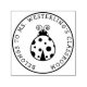 Marque os itens na sua sala de aula com esta propriedade de carimbo com um bug de senhora e uma fonte encantadora. Personalize com seu nome em curvatura de texto em um arco.