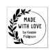 Feita com amor pelo autopicante com uma simples coroa de folhas de morango. Dê aos seus bens feitos à mão ou produtos feitos à base de casa um toque pessoal com este personalizado feito com o selo de amor próprio com seu nome dentro a berry wreath.