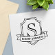 Simples ilustração de um escudo com uma fita inicial sobreposta por um nome. Personalize com suas próprias informações.