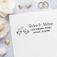 Um par de pássaros bonitinhos de desenho animado com um pequeno coração. Personalize com seu próprio endereço.
