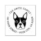 Devolva o selo de borracha com boston terrier. Nome e endereço personalizados em um tipo de letra de serifa caprichosa.