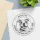 Foto personalizável de animal de estimação e carimbo de texto. Observe que talvez seja necessário ajustar as informações adicionando ou excluindo alguns caracteres para fazer o texto alinhado corretamente.