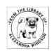 Carimbo Auto Entintado Cachorro Pug em Pé Nome do Livro da Biblioteca