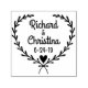 Moderno e clássico, este design é simples, mas um verdadeiro stand-out. Dois ramos de louros de folha flanco flanqueam cada lado, curvando suavemente para dentro para sugerir uma forma cardíaca macia. No fundo da forma está um pequeno coração. O centro é vazio de personalização - os nomes e a data de casamento são mostrados aqui no exemplo - mas você pode personalizar com seu próprio texto usando os modelos fáceis de fornecer. Elegante na simplicidade.