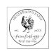 Este selo de fazenda de vintage redondo ficaria bonito em caixas de ovos, bolsas de papel e outras embalagens de produtos frescos de sua fazenda familiar! Apresenta uma armação redonda e uma ilustração rústica de um galo no centro. No topo, há o nome da sua fazenda familiar em tipografia elegante, dobrando graciosamente. Nas laterais de um galo, há uma data de estabelecimento, e na base, dois textos personalizados: "ovos frescos de fazenda" em um roteiro de caligrafia química e um número de telefone. Para personalizar este carimbo, clique no botão "Personalizar este modelo" e altere as informações.
