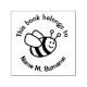 Um desenho animado de abelha sorridente. Campos de texto personalizados para mensagem e nome.