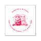 Carimbo de nome e endereço com uma ilustração fofinha. Um par de lontras em roupas de pessoas rico. Vestir camisas riscadas e vestir uma gravata e a outra vestir uma arco. Envolvido por corações amorosos.