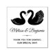 Uma simples arte de linha de um par de cisnes negras. Personalize com nomes de noiva e noivo e uma mensagem.