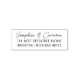Carimbo de endereço simples, moderno e na moda, com estilo de design minimalista de tendência, com nomes de letra de caligrafia informais e cursivos de caligrafia informais e texto de endereço sans-serif limpo e clássico, preto e branco clássico. Personalize o texto ou altere as fontes para criar um endereço de devolução de convite de casamento ou carimbo de endereço de envelope RSVP.