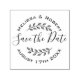 Crie um toque perfeito e moderno com este selo de borracha personalizado Save the Date com letra circular e coroa de folhas com sombra desenhada à mão. Observe que talvez seja necessário ajustar as informações digitadas adicionando ou excluindo alguns caracteres ou espaços para fazer o texto alinhado corretamente.
