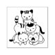 Funny illustration of five cartoon cats in a pyramid formation with two cats at the bottom, two in the middle, and one on top. The cats have different markings and various expressions. One appears to be facing away.