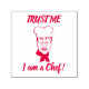 Cabeça de chef com chapéu, corcunda vermelha e texto personalizado.