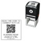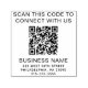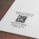 Carimbo de promocional moderno e simples para a sua empresa ou organização. Adicione seu código QR e duas linhas de texto personalizado, como "digitalizar para se conectar conosco" e o nome, endereço e número de telefone da sua empresa.