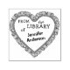 Personalizado na biblioteca de selos, com um nome personalizado de um colecionador de livros e uma adorável ilustração de cheio de livros em forma de coração. Marque seus livros com esse belo selo da biblioteca. Personalize-o substituindo o nome da amostra pelo seu próprio nome,