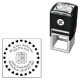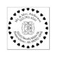 Este selo redondo apresenta um círculo decorativo de corações moldando todo o design. O nome é exibido em uma curva suave no topo, seguida do número de telefone diretamente abaixo dele. No centro, um gráfico de bombeiros, policiais e outros respondedores de emergência nos protegendo, o que acrescenta um toque charmoso e pessoal. O endereço é elegantemente curvo ao redor do fundo em duas linhas separadas, completando o design circular.