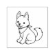 Ilustração de desenho animado de um cão branco, ligeiramente enevoado, sentado, com um sorriso feliz, com a língua para fora. Um simples lenço está amarrado em volta do pescoço.