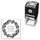Selo de borracha automático de casamento elegante com texto personalizado, com uma coroa de folhas ao redor. Personalize o texto para as necessidades do seu casamento. Ótimo para uso diário e ocasiões especiais.