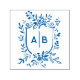 Carimbo Auto Entintado Crista Botânica Azul Francês do Casamento Monogram
