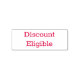 O texto "Elegível para Desconto" ou o seu próprio texto personalizado definido em vermelho (ou a cor da tinta escolhida) destaca este punível carimbo de autoimpressão.