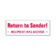 Este simples design de carimbo apresenta as mensagens "Return to Sender!" e "~ RECIPIENT HAS MOVED ~". Pode ser utilizado para indicar que o correio postal recebido foi entregue no endereço errado e deve ser devolvido ao remetente.