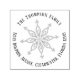 Adicione um pouco de elegância ao seu correio de férias com este selo festivo de volta de Natal. Perfeito para mostrar seu nome familiar, essas etiquetas personalizáveis apresentam um layout de texto em círculo na moda redondo com sotaques mínimos e brancos de floco de neve de inverno. Projetados com um encanto rústico, eles combinam uma tipografia simples e um estilo de selo de correio, ideal para enviar cartões de natal quentes. Personalize o seu hoje para adicionar um toque único e elegante à sua correspondência sazonal!