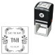 Announce your upcoming celebration with ease and style using this custom self-inking stamp. The design features an elegant Art Deco frame with subtle botanical accents, perfectly framing your personalized monogram initials and the key date. Enjoy clear, consistent impressions for quickly customizing save-the-date cards, envelopes, and party favors. This pre-inked stamp delivers thousands of crisp marks, offering a convenient and chic way to add a personalized touch to your wedding or event preparations, ensuring every detail is polished.