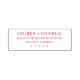 This self-inking stamp features a clean, minimalist design with a focus on typography. The layout is simple and elegant, using ample white space to highlight the centered text in a classic black font. Perfect for formal events or announcements, it conveys a professional yet personal tone through its balanced composition and modern style. Customizable elements allow you to personalize the stamp for special occasions like weddings or significant celebrations.