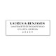 This elegant rubber stamp features a clean, minimalist design with centered text elements on a white background. The layout is vertically aligned, creating a balanced and formal appearance, perfect for personalizing documents or invitations. It uses classic serif fonts for the main text, paired with a contrasting sans-serif font for added clarity, conveying sophistication and simplicity. Ideal for weddings, events, or professional correspondence, this stamp combines functionality with a polished aesthetic to make your stationery stand out.