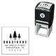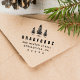Carimbo auto-tintado com árvores de pinheiro gráficas e seu endereço.