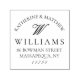 Este elegante carimbo de endereço de retorno apresenta seus primeiros nomes curvos graciosamente acima do seu monograma inicial de solteiro em um script chic formal, com seu nome de família e detalhes de endereço de retorno embaixo da elegante tipografia vintage. Personalize este carimbo de casamento do casal casado clicando no botão "Personalizar".