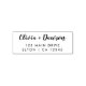 Carimbo de endereço simples e na moda, em estilo design minimalista moderno, com uma elegante tipografia de escrita natural a preto e branco clássico, com letra de escrita manual informal. O texto pode ser facilmente personalizado para um carimbo super único para seu dia de casamento ou uso diário!