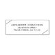 Carimbo geométrico moderno, com um design simples com duas linhas, uma na parte superior esquerda e outra na parte inferior direita, juntamente com o nome da sua empresa e duas linhas de texto para o seu endereço de devolução em uma fonte sans serif. Um design minimalista que ainda aparece como chic e na moda. Este autocolante é uma forma excelente de adicionar um toque profissional aos seus envelopes.