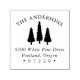 Carimbo de ida e volta, de férias, com 3 pinheiros desenhados à mão no meio do selo. Personalize o carimbo personalizado adicionando seu sobrenome no topo com seu endereço e código postal exibidos na parte inferior. Perfeito para usar em envelopes de Natal, cartões de saudação, convites de festas, etc.