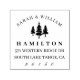 O selo de borracha de endereço de retorno de chic em terra russa apresenta seus primeiros nomes curvos graciosamente sobre um trio de pinheiros, com seu nome familiar e detalhes de endereço de retorno embaixo.