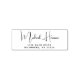 Carimbo de endereço na moda return com seu nome em um script de assinatura moderno e seu endereço em uma tipografia simples.