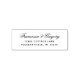 Clássico, elegante endereço de retorno de casamento, com autoimpressão, com seus nomes em um roteiro preto formal e seu endereço na fonte sans serif.