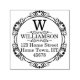 Um design de carimbo personalizado tradicional, com caráter personalizado, que inclui uma borda retrorativa decorativa com ornamentos tipográficos elegantes, inicial de monograma, nome e endereço de retorno.