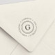 O design de endereço de retorno elegante apresenta o seu monograma inicial de solteiro no centro com uma borda de círculo duplo. Seu nome familiar e endereço residencial estão curvos por fora em letras clássicas.