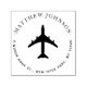 Este carimbo de endereço de retorno de nome personalizado redondo de avião elegante é perfeito para qualquer viajante frequente ou piloto! Ele irá ajustado seu primeiro e sobrenome, ou seu nome de família e um endereço de cheio. O design apresenta uma silhueta de avião e texto personalizado em uma tipografia elegante de minúsculas e maiúsculas.