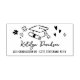 Torne seu correio extra festivo com este carimbo de borracha auto-entintado de endereço de devolução com desenhos pretos divertidos de formatura (chapéu, diploma, corações e flores) e um nome em letra cursiva moderna. O estilo limpo parece clássico, divertido e fácil de combinar com qualquer papelaria de formatura. Personalize as linhas de nome e endereço para um visual polido e coordenado.