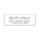 O endereço de retorno de casamento moderno é um carimbo de autoimpressão com um design simples com seus nomes em um script manuscrito e seu endereço de retorno em uma fonte sans serif. O modelo tem três linhas de texto para o seu endereço. Um design básico e minimalista que ainda se encontra tão elegante. Este selo de borracha autopicante é uma forma excelente de adicionar um toque pessoal aos seus envelopes.
