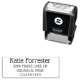 Crie seu próprio carimbo de endereço de retorno personalizado com um estilo simples e bonito e a 4ª linha para obter informações de contato adicionais, como o número de telefone. Apelido em cima, em caracteres elegantes e modernos, com o endereço abaixo. A quarta linha na parte inferior está pronta para adicionar o número de telefone, endereço de e-mail, site, slogan de negócios, o que você quiser. Ou apagá-lo. Perfeito para a gaveta de suprimentos. Não apenas como um carimbo de endereço de retorno personalizado para envelopes personalizados, mas conveniente também para etiquetar livros e outros pertences pessoais com seus dados de contato personalizados, caso eles se percam. Seria um presente de formatura personalizado único, também, para um jovem ou mulher prestes a sair por conta própria.