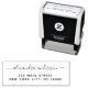 Carimbo de tinta automática de endereço de retorno de convite para a tipografia de script cursivo moderno e elegante, que é excelente de um documento Salvar data, RSVP, Chá de panela, Chá de fraldas, Festa de aniversário ou Cartão de férias de Natal ou Convite. O texto deste rótulo de tipografia de script moderno com letra manual pode ser atualizado e personalizado com seu nome e endereço. Estes Chás de fraldas, Chás de panela, Festas de solteira por Correio, Casamento ou Atraso da Data de Devolução de Endereços são perfeitos para aquele evento ou parte que precisa ser movida para uma nova data.