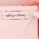 Elegante carimbo de tinta para endereço de devolução de convite de casamento com letra moderna e caligrafia manuscrita. Esses carimbos de endereço de nome completo com o primeiro nome e sobrenome em uma linda tipografia de estilo manuscrito com rabiscos e informações de endereço de devolução, em torno de uma borda de linha retangular, fáceis de personalizar. Economize tempo e adicione estilo ao seu casamento, Save the dates, Chá de Panela, RSVP, Aquecimento de Casa, Anúncios de Chás de Bebê, Formatura, Festa de Aniversário, Cartão de Natal e carimbo de etiqueta de endereço de devolução para convite. Eles também fazem ótimos presentes de Natal para familiares e amigos, presentes de Aquecimento de Casa ou presente de casamento para um novo casal!