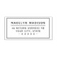 Devolva o carimbo de endereço com o seu nome e endereço de retorno numa fonte sans-serif moderna e numa borda fina. Estilo moderno e minimalista.