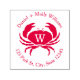 Um carimbo de endereço de autocolante que ilustra um caranguejo no centro.