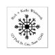 Um carimbo de endereço de autoindigitação com ilustração de um floco de neve no centro.