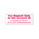 Este design de carimbo limpo contém a mensagem "Para depósito apenas na conta", além de um nome personalizado e número de conta. Pode ser utilizado por um profissional administrativo ou por um trabalhador administrativo para adicionar rapidamente um despejo restritivo a um cheque.